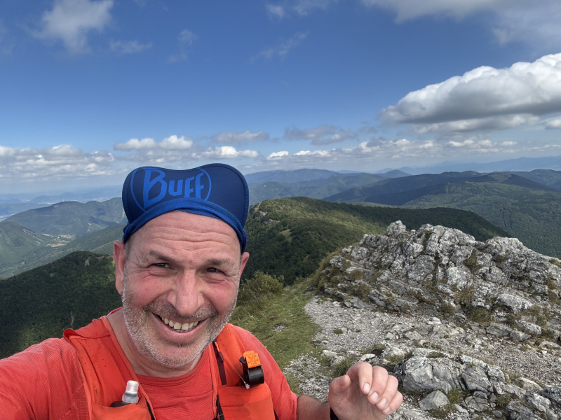 Bežalo sa vo veľkej pohode, teplota bola príjemná a na vrcholovej plošine celkom slušne pofukoval vetrík. No a vrchol som si užil celkom sám. Trochu som si oddýchol, poobzeral sa, urobil pár fotiek, aby bolo na čo spomínať a pokračoval som ďalej cez Ostrú skalu do Vríčanského sedla, a potom po žltej cez Bak k autu. Celý okruh má asi 12km a 915m stúpania.