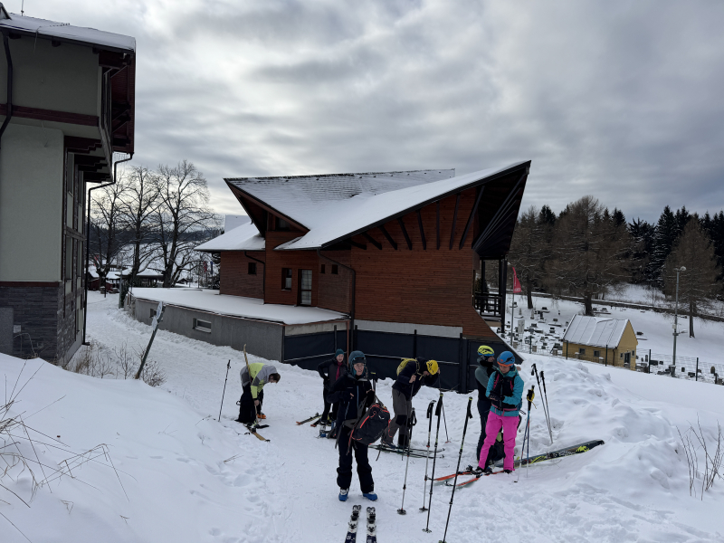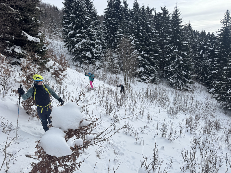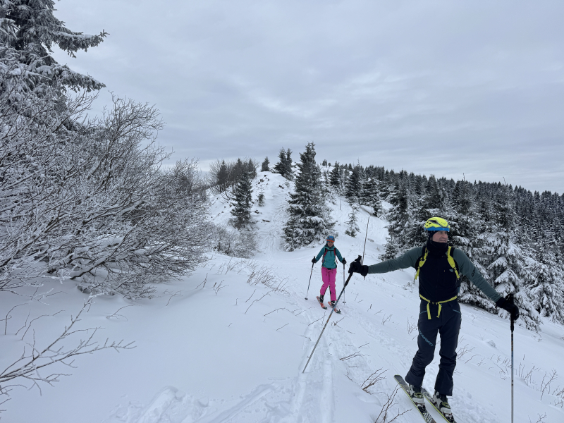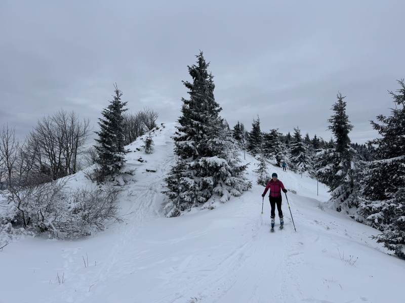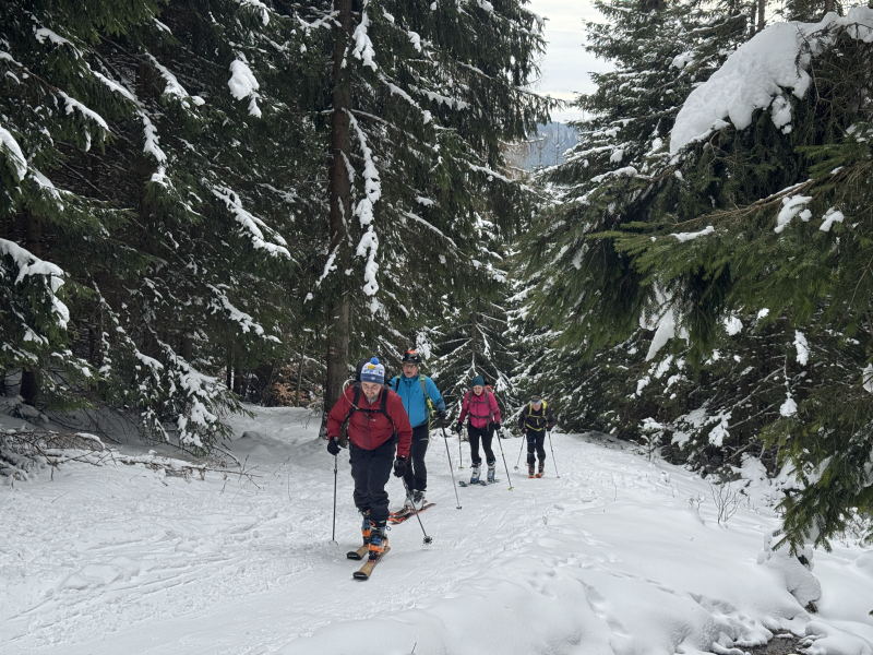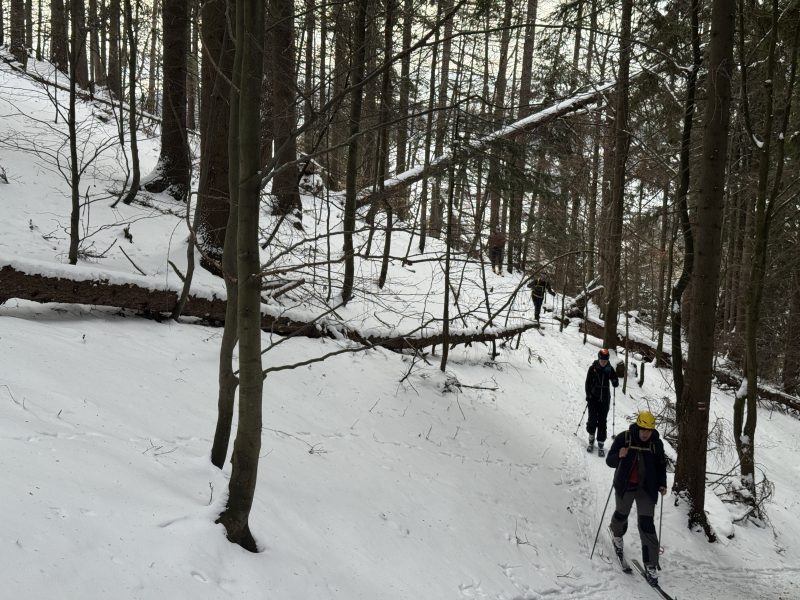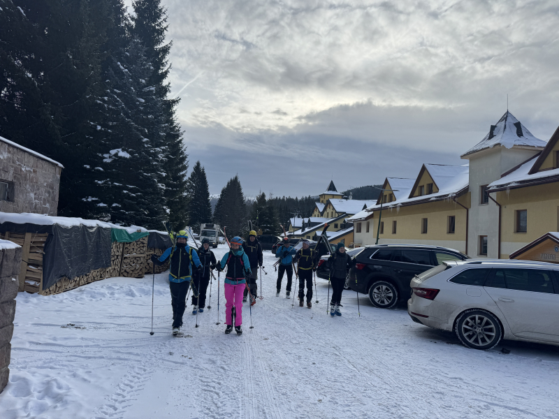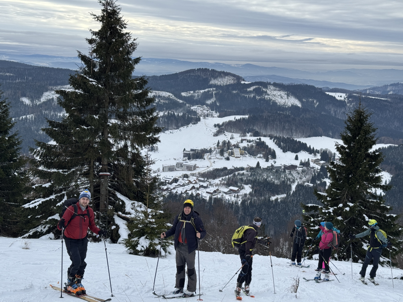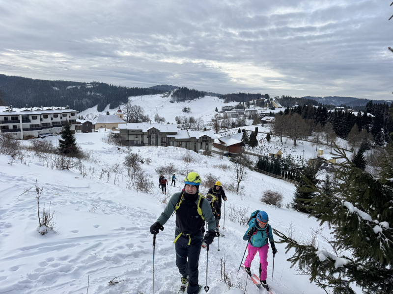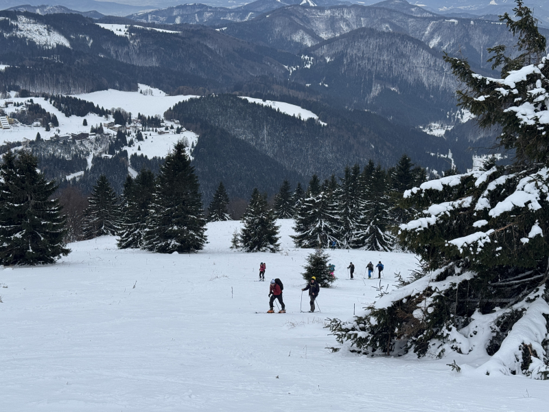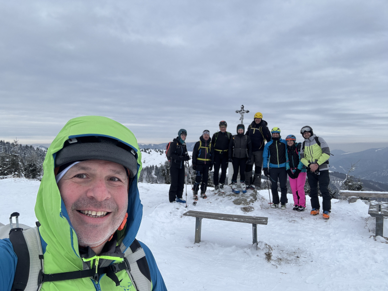 Ako to už roky dobrým zvykom býva, snažíme sa o nejaký ten spoločný Trojkráľový výstup. Toho roku podmienky určili donovalskú oblasť pre výstup na Zvolen v požehnanom počte 9. Autá sme zaparkovali pri Zorničke. Nacvičili sme si pripínanie lyží na batohy a pobrali sa peši do centra. Za obecným úradom sme pripli lyže na nohy. Janko úplne prvý raz. A začali sme stúpať nahor. Vybrali sme trasu A. Občasne super, občasne bolo treba dávať veľký pozor. Ale v družnom rozhovore to išlo. Nad lesom už fúkal dosť nepríjemný vietor. Nejaká tá foto na Zvolene a čaj a šup šup na Novú hoľu, kde sme sa tiež nezdržali dlho. Zlyžovali sme nadol po zjazdovke a dali si spoločný obed. Nuž kamarátska pohoda. Tu sme sa už nemuseli ponáhľať.